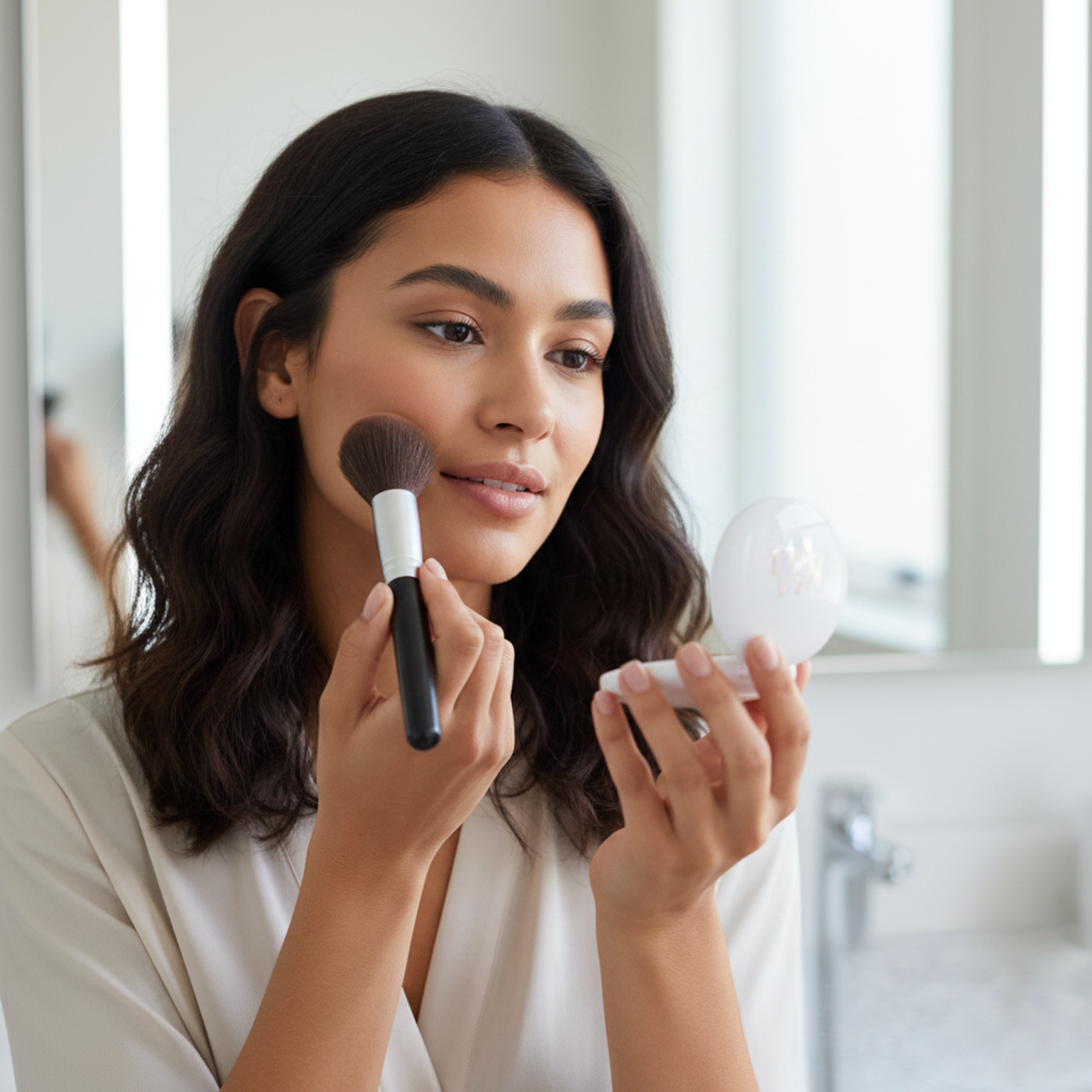 - Carry a Compact for Touch-Ups: A small puff or brush lets you refresh throughout the day.